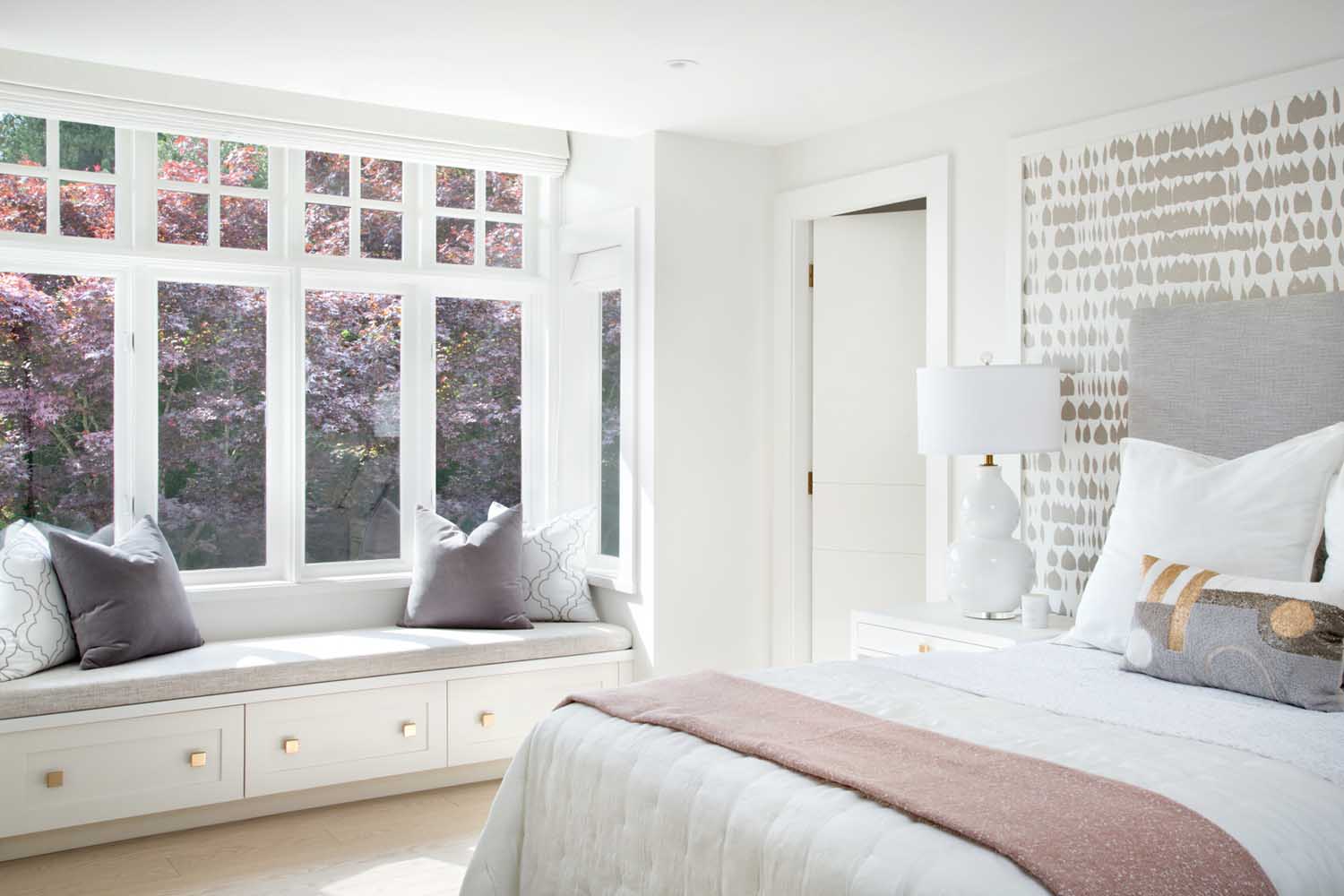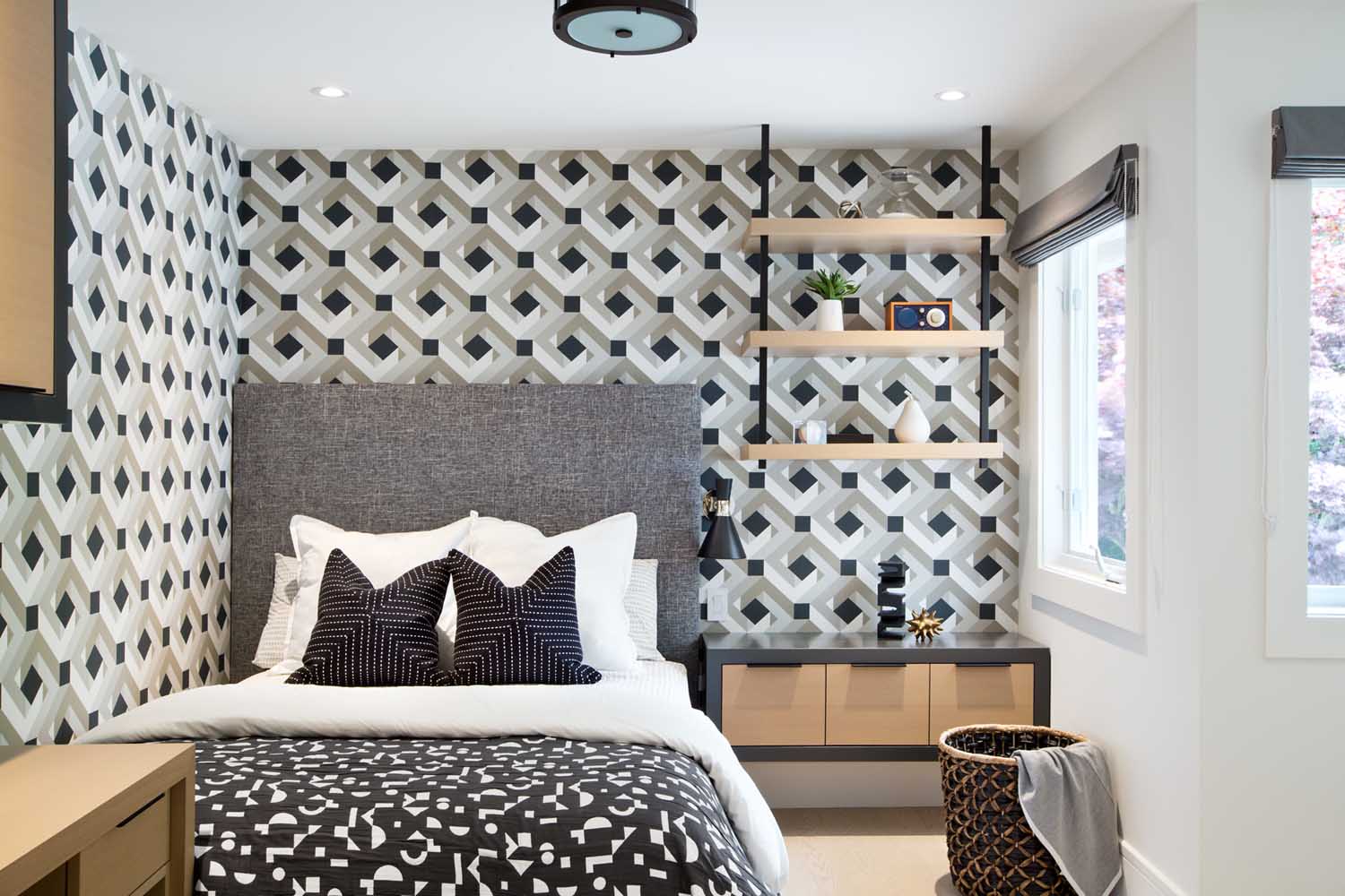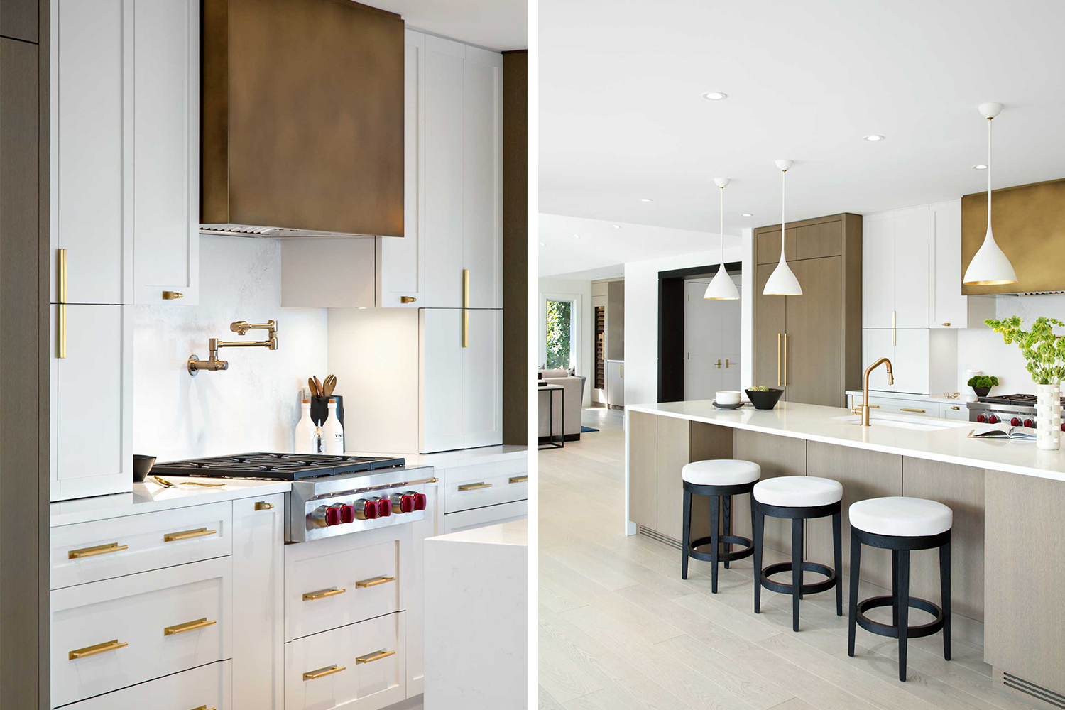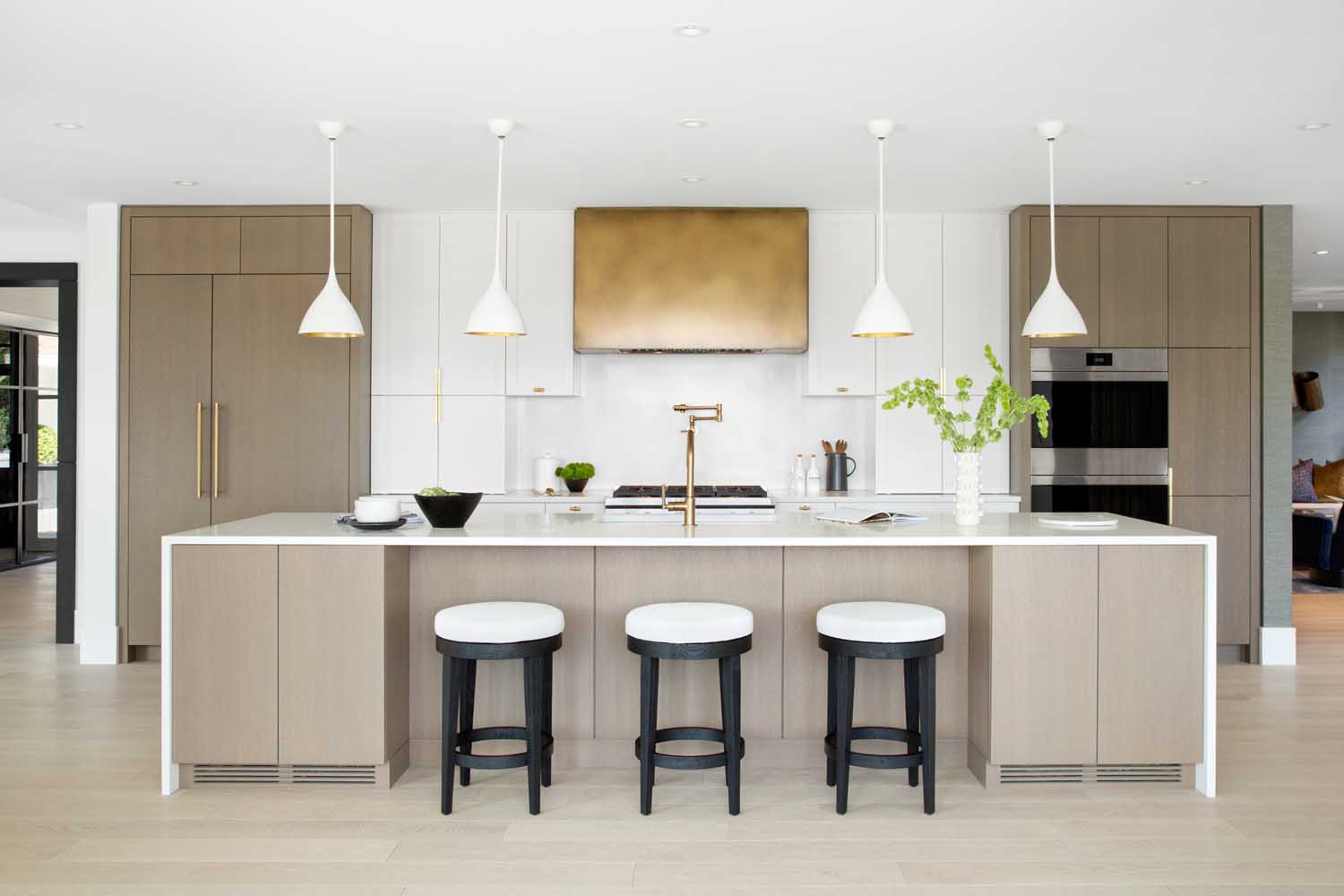 我們會(huì)在在項(xiàng)目開始時(shí)與客戶充分溝通,深入的了解他們希望在新家中看到什么。我們從他們的藝術(shù)收藏中中汲取了很多靈感,我們使用了強(qiáng)烈的圖案和顏色,材質(zhì)的運(yùn)用也是我們?cè)O(shè)計(jì)的關(guān)鍵,因此我們將白橡木櫥柜與大理石、金屬拉絲的五金和整個(gè)墻面使用的紋理墻紙等飾面相搭配,營(yíng)造出一種視覺(jué)的沖擊力。